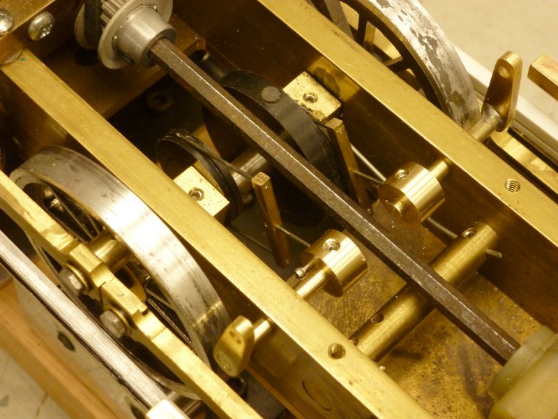 front gearbox has holes drilled in it for a pieces of piano wire which
