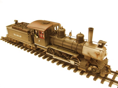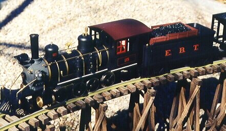 All in all, I was quite pleased with the end result. The Aristo engine had some quality problems right out of the box, both were easy to fix but one was tough to find and required dismantling the entire drive mechanism to find and fix. The first one I noticed was a bind in the mechanism which I traced to the piston rod bottoming out in the cylinder on the engineers side. This was fixed by clipping 1/16" off the piston rod. The other problem was a bind that caused the locomotive to lurch primarily when running in reverse. This turned out to be due to having too much slop in the casting that holds the front worm gear inline with axle gear. It manifested itself in reverse due to the torque causing the worm to be misaligned with the axle gear. When going forward the torque pulled the gear back into alignment. This was fixed by installing a shim on the one side which kept the worm in alignment all the time.The following photos show the completed locomotive.