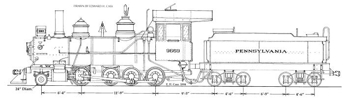 Both the EBT and the ET&WNC operated small Baldwin 2-8-0's. Both of these engines were just slightly larger and had different wheel spacings than the C-16's built for the D&RGW. The EBT engines were in fact built to the same plan as the C-19's. Baldwin built hundreds of engines with this wheel arrangement with a variety details. Not wishing to start from scratch, I decided to modify Aristo's C-16 to create a generic Baldwin for the RC&G. As can be seen in the two plans below, both of the prototype engines had much longer smoke boxes than the C-16 and the main rods were attached at the third rather than the second as on the C-16. I have incorporate both of these features on my version. The RC&G version will look more like ET&WCN's #5, with smooth unfluted domes, but will have a steam generator and electric head light. The boiler will be smaller in diameter than #5 but the boiler height at the top of the boiler will be close to matching the prototype's height due to Aristo's infamous 1/4" that they added to the C-16, supposedly to compensate for the drive train. I did lower the cylinders and pilot on mine but left the boiler alone.