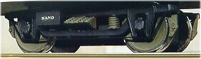 A close up of the truck side frame. The wheelbase of the NWSL trucks was longer than the Bachmann trucks so I cast resin side frames using parts from the Bachmann side frames to make the master. The truss rod across the bottom of the frame was made from brass strip and the brake shoes were cut off of the Bachmann side frames and attached to the new ones.